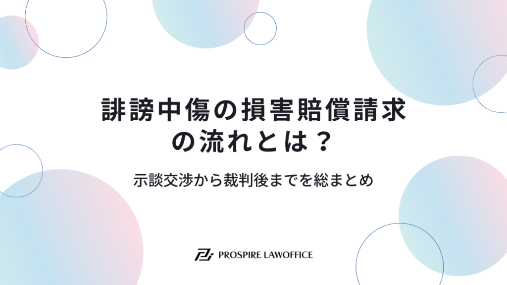 インターネット上の誹謗中傷による損害賠償請求の流れを、示談交渉から裁判後まで徹底解説。加害者特定、示談交渉、訴訟、強制執行など、各段階における注意点、弁護士に依頼するメリットなども詳しく説明します。名誉毀損罪、侮辱罪、プライバシー権侵害など、具体的な事例も交えてわかりやすくまとめました。